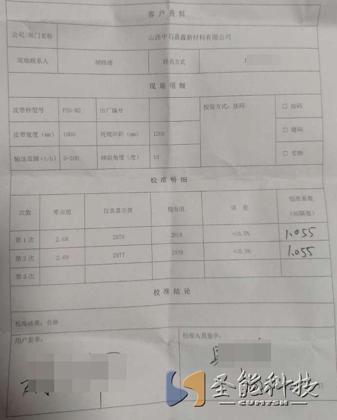 公司售后工程師按時(shí)抵達(dá)現(xiàn)場(chǎng),首先清點(diǎn)高精度皮帶秤配件,確保配件齊全。確認(rèn)配件尺寸及數(shù)量無(wú)誤,立即著手組裝。第二天進(jìn)行安裝時(shí),基于現(xiàn)場(chǎng)輸送機(jī)條件,對(duì)秤體進(jìn)行了切割處理,增加底部空間,確保安裝到位。經(jīng)多次標(biāo)準(zhǔn)掛碼調(diào)試,零點(diǎn)值穩(wěn)定在2.68~2.69,誤差均<0.5%,間隔值1.055,稱重結(jié)果滿足客戶要求,儀表數(shù)值顯示實(shí)時(shí)、準(zhǔn)確。