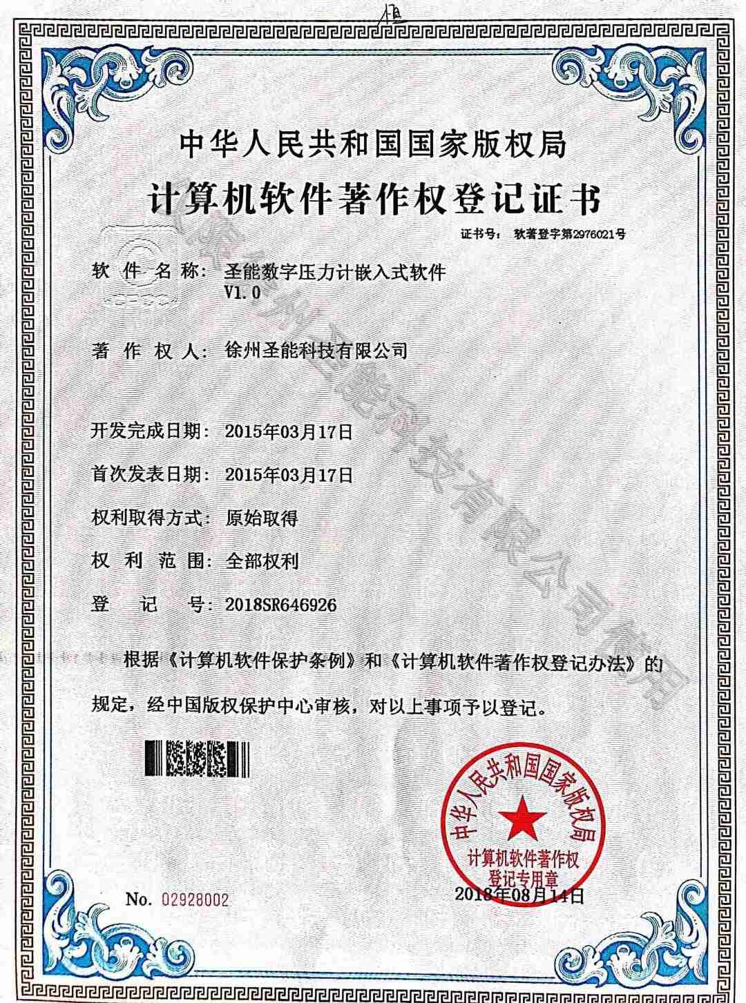 數(shù)字壓力計(jì)嵌入式軟件軟件著作權(quán)